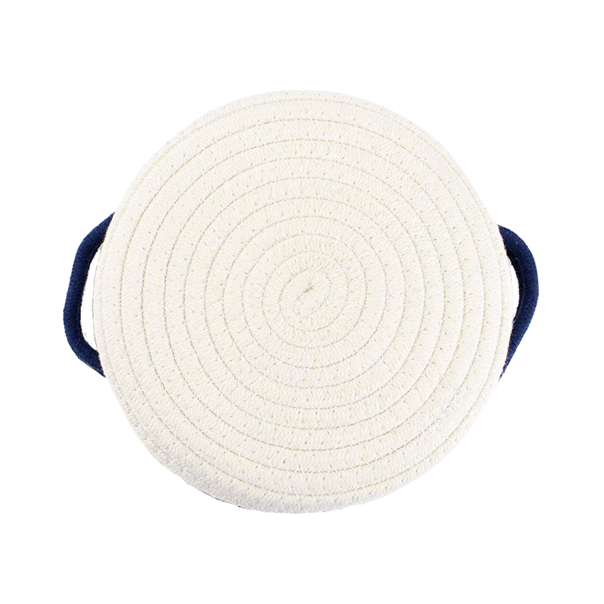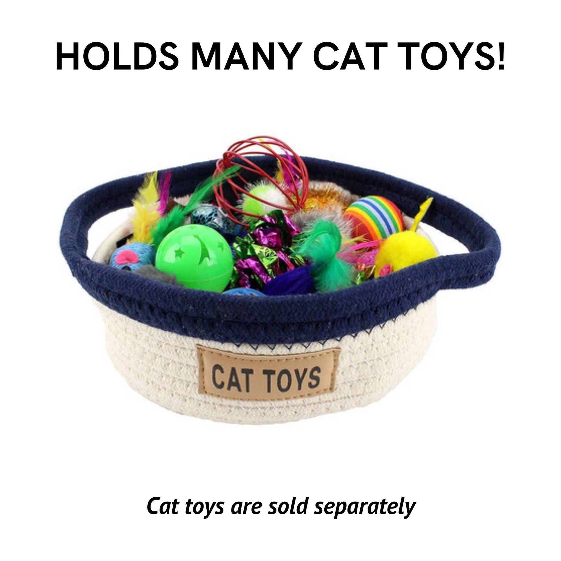 A stylish two-toned blue and white cotton rope toy basket will be a great addition to your home's decor. This makes for an easy way to store your cat's toys and keep your space organized. The open-top allows your cat access to pick and choose what toy they want to play with. - Small basket measures 8" x 8" x 2.5"